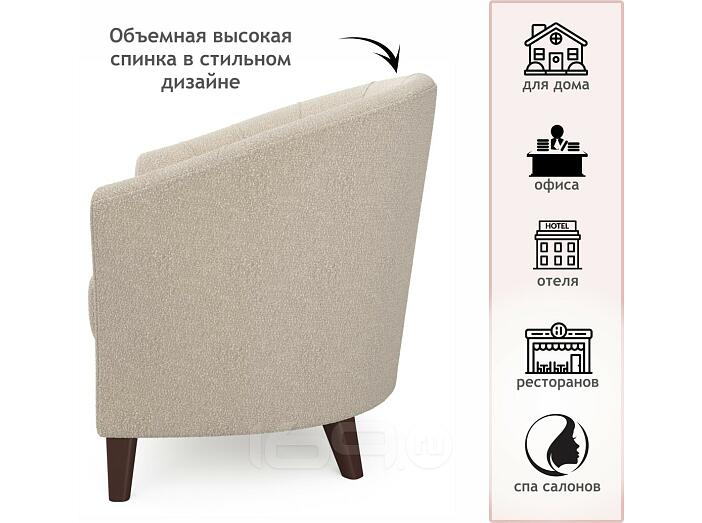 Мягкое кресло Line из ткани букле (барашек) – незаменимая вещь в любом доме и офисе. Благодаря универсальному дизайну прекрасно впишется как в современный интерьер в стилях лофт, модерн или минимализм, так и классический интерьер.