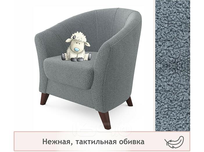 Мягкое интерьерное кресло может быть выполнено в различных цветовых вариантах из высокопрочного модного материала – букле (мягкий барашек). Это очень мягкая и приятная на ощупь ткань. Ткань износостойкая, легко чиститься от загрязнений, практичная, эластичная, устойчивая к ультрафиолету.
