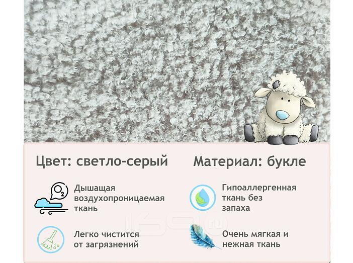 Мягкое интерьерное кресло может быть выполнено в различных цветовых вариантах из высокопрочного модного материала – букле (мягкий барашек). Это очень мягкая и приятная на ощупь ткань. Ткань износостойкая, легко чиститься от загрязнений, практичная, эластичная, устойчивая к ультрафиолету.