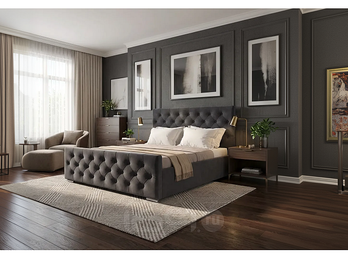 Кровать ИНТЕРО велюр серый 1600x2000, изголовье мягкое