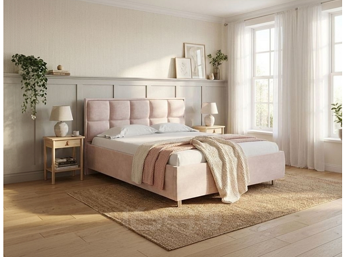Кровать Chessy велюр лофти бежевый 120x200 см, мягкое изголовье