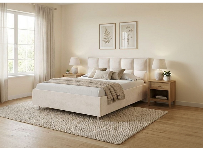 Кровать Chessy велюр лофти лён 120x200 см, мягкое изголовье