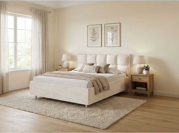 Кровать Chessy велюр лофти лён 90x200 см, мягкое изголовье