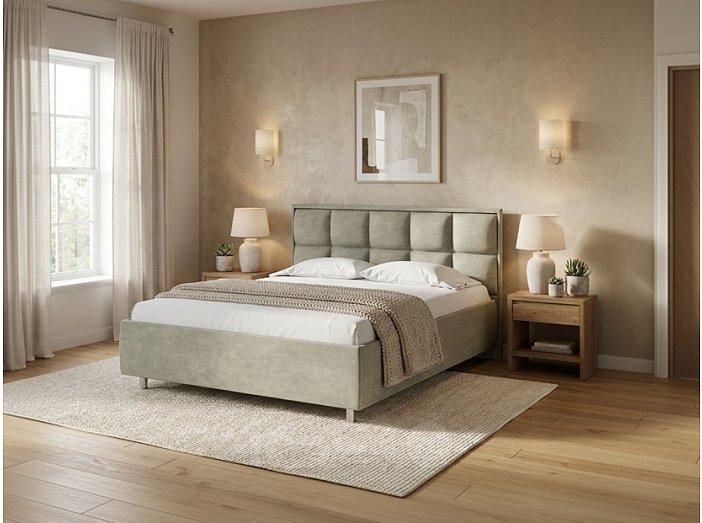 Кровать Chessy велюр лофти олива 80x200 см, мягкое изголовье