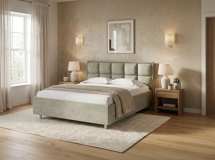 Кровать Chessy велюр лофти олива 90x200 см, мягкое изголовье