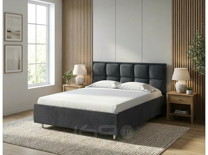 Кровать Chessy велюр teddy 021 древесный уголь 80x200 см, мягкое изголовье