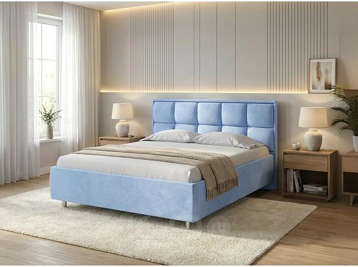 Кровать Chessy велюр teddy 311 небесно-голубой 80x200 см, мягкое изголовье