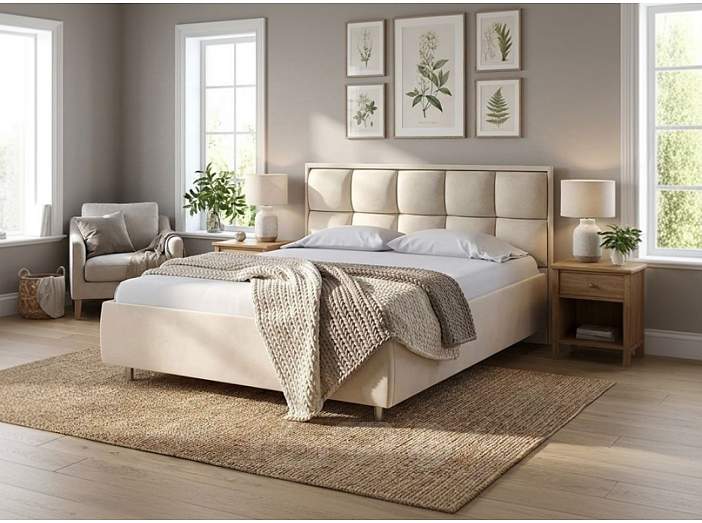 Кровать Chessy велюр ultra песочный 90x200 см, мягкое изголовье