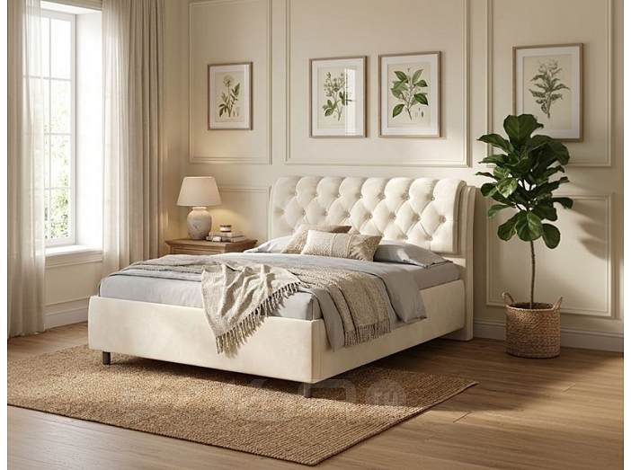 Кровать Chester Tall велюр лофти лён 160x200 см, мягкое изголовье