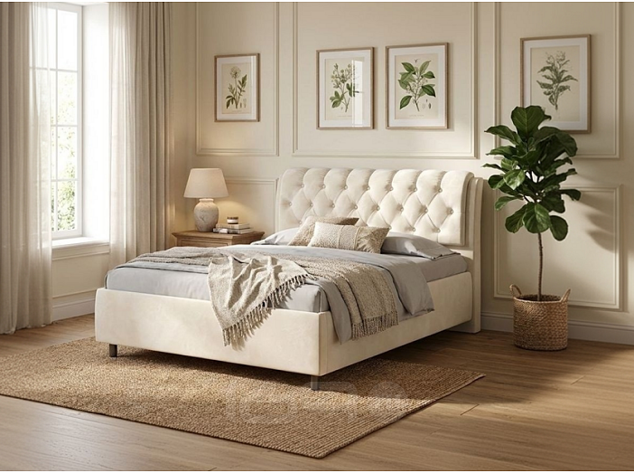 Кровать Chester Tall велюр лофти лён 90x200 см, мягкое изголовье