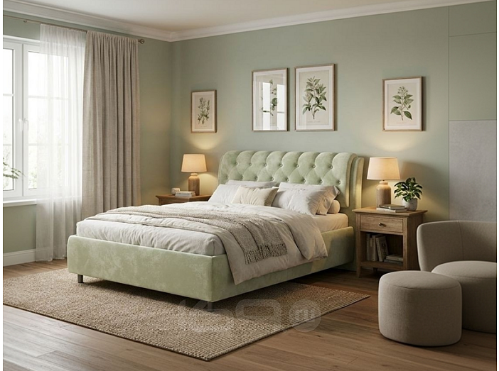 Кровать Chester Tall велюр лофти олива 80x200 см, мягкое изголовье