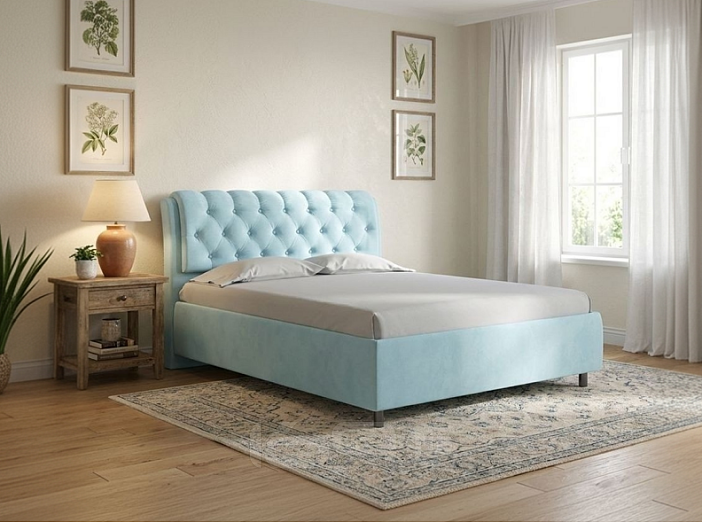 Кровать Chester Tall велюр teddy 028 морозная свежесть 80x200 см, мягкое изголовье