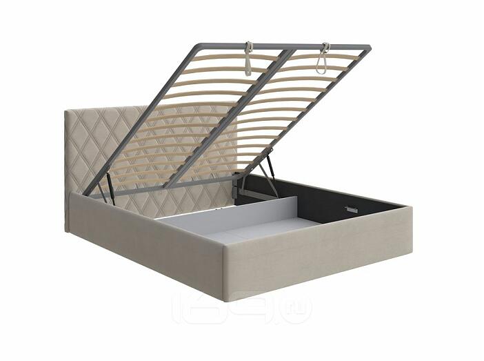 Кровать Fresco с бельевым ящиком велюр ultra песочный 180x200 см, мягкое изголовье