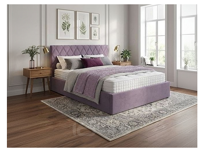 Кровать Fresco с бельевым ящиком велюр ultra сливовый 120x200 см, мягкое изголовье