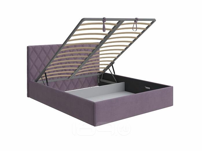 Кровать Fresco с бельевым ящиком велюр ultra сливовый 140x200 см, мягкое изголовье