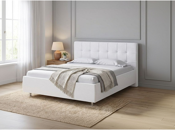 Кровать Nety без основания велюр teddy 300 снежный 80x200 см, мягкое изголовье