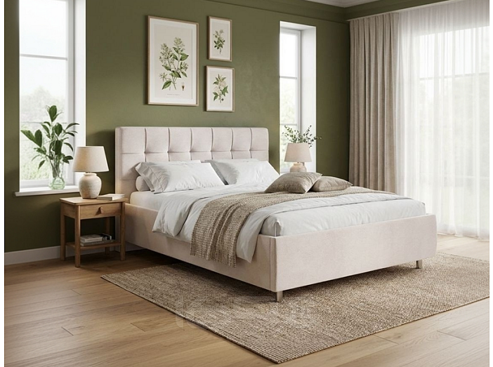 Кровать Nety без основания велюр teddy 302 жемчужный 80x200 см, мягкое изголовье