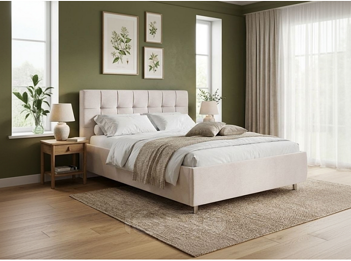 Кровать Nety без основания велюр teddy 302 жемчужный 90x200 см, мягкое изголовье