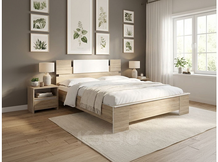 Кровать Оливия без обивки дуб сонома/белый без подъёмного механизма 1600x2000, без ортопедического основания, изголовье жесткое