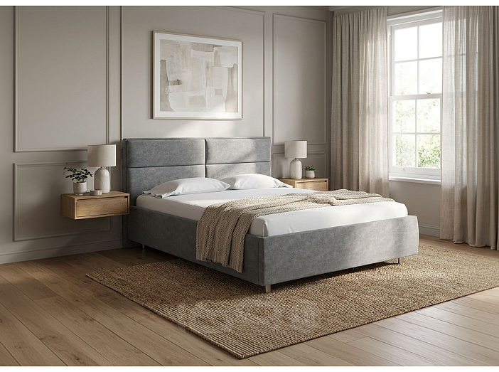 Кровать Pado велюр gratta 4 серый космос без подъёмного механизма 1200x2000, без ортопедического основания, изголовье мягкое