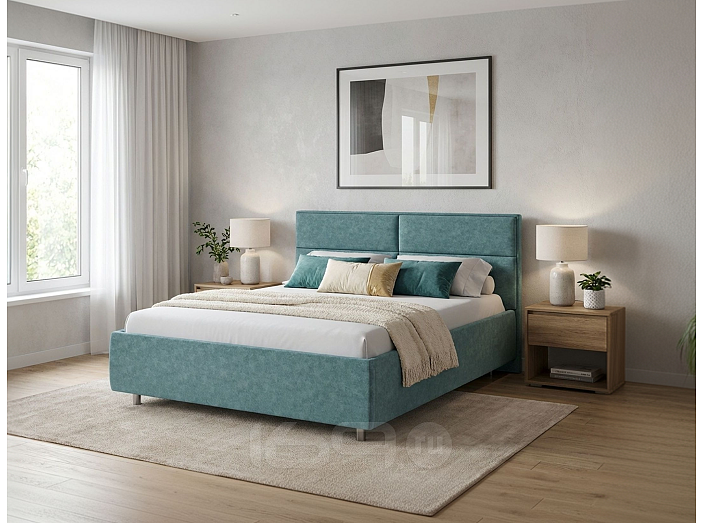 Кровать Pado велюр gratta 5 морская лагуна без подъёмного механизма 1200x2000, без ортопедического основания, изголовье мягкое