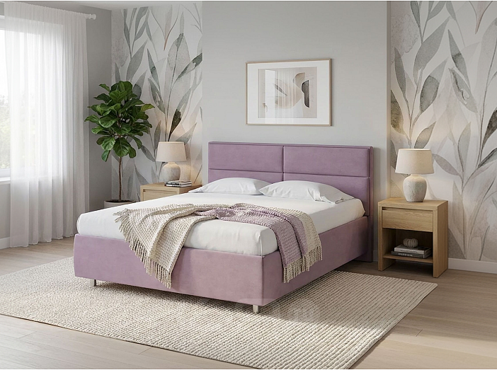 Кровать Pado велюр лофти слива без подъёмного механизма 1200x2000, без ортопедического основания, изголовье мягкое