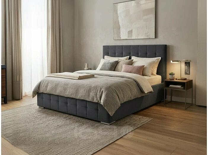Кровать Пассаж велюр серый 1800x2000, изголовье мягкое