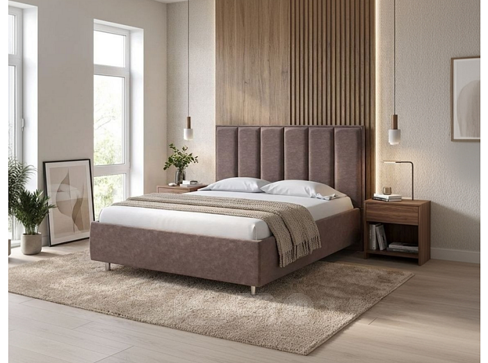 Кровать Routa велюр gratta 8 брауни 90x200 см, мягкое изголовье
