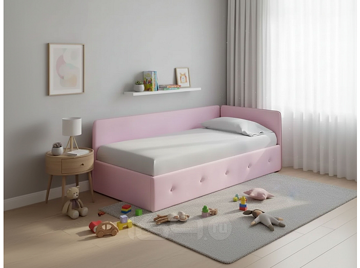 Кровать Umka велюр teddy 027 розовый фламинго 90x200 см, мягкое изголовье