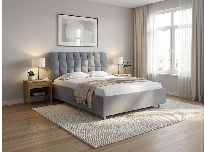 С кроватью Volumo ваша спальня всегда будет выглядеть на высоте. Спинка кровати Volumo украшена стежкой в виде квадратов. Создается впечатление, что она состоит из нескольких рядов равномерно расположенных объемных подушечек. Используемые материалы — ДСП, обивка выполнена из мебельной ткани. Широкий выбор цветовых решений позволит каждому найти вариант себе по вкусу. Кровать может быть дополнительно укомплектована конусообразными опорами из массива для формирования единой стилистики мебели и интерьера. Внимание! Приобретенный товар может немного отличаться по тону. Это обусловлено цветопередачей устройства.
