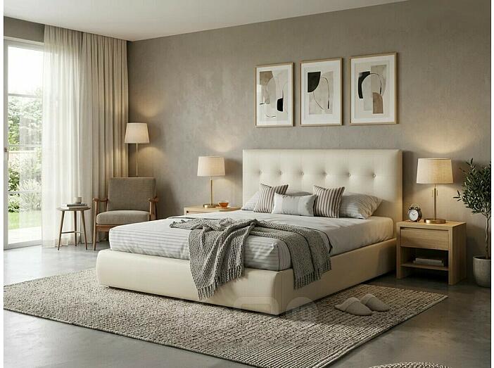 Рельефная мягкая спинка с неглубокими стяжками придает особую изысканность изголовью. Обивка изголовья и весь периметр кровати выполнен из высокопрочного материала “Винилискожа”. Передняя часть кровати предназначена для хранения постельных принадлежностей. Данное пространство закрывается противопыльным матерчатым коробом из плотного спанбонда. Матерчатый короб фиксируется в подматрасном пространстве с помощью системы ленты-липучки "HOOK&LOОP".