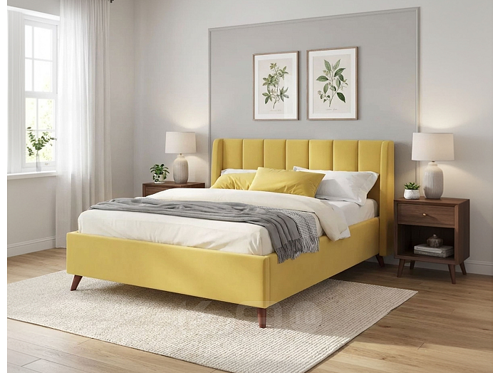 Кровать Betsi велюр жёлтый с подъемным механизмом 1600x2000, ортопедическое основание, изголовье мягкое