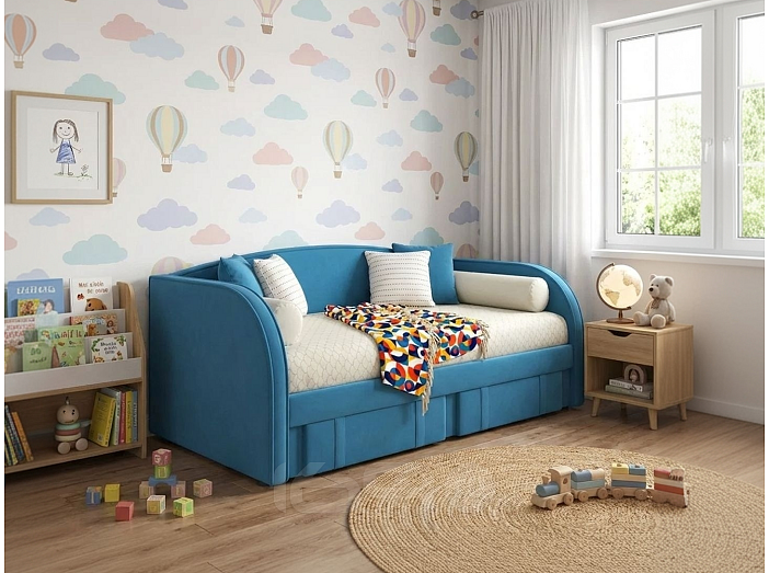 Кровать Elda велюр синий без подъёмного механизма 900x2000, изголовье мягкое