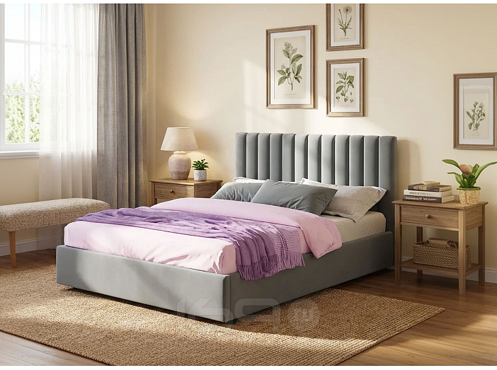 Кровать Olivia велюр серый с подъемным механизмом 1400x2000, ортопедическое основание, изголовье мягкое