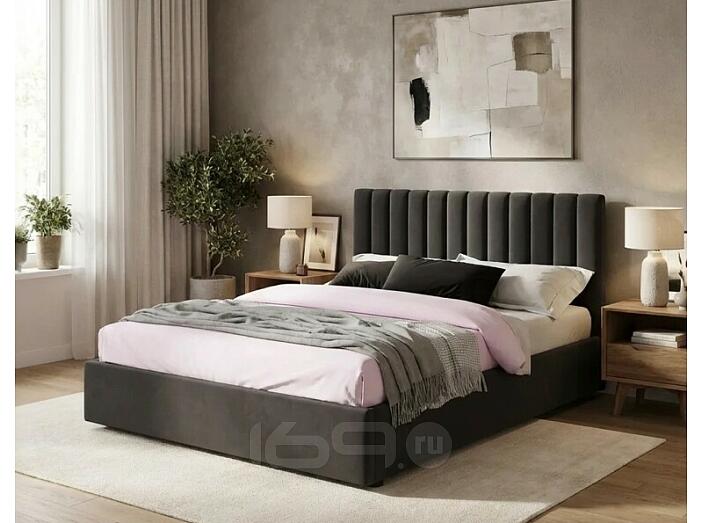 Кровать Olivia велюр шоколад с подъемным механизмом 1400x2000, ортопедическое основание, изголовье мягкое