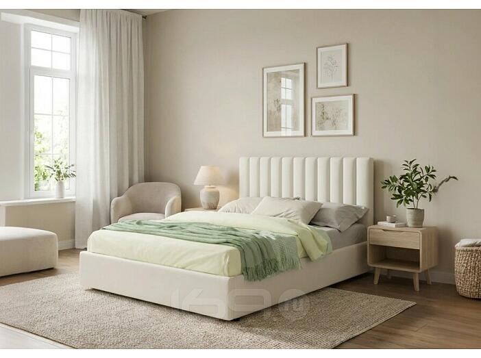 Кровать Olivia велюр бежевый без подъёмного механизма 1600x2000, изголовье мягкое
