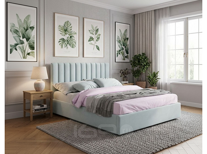 Кровать Olivia велюр мятный без подъёмного механизма 1600x2000, изголовье мягкое