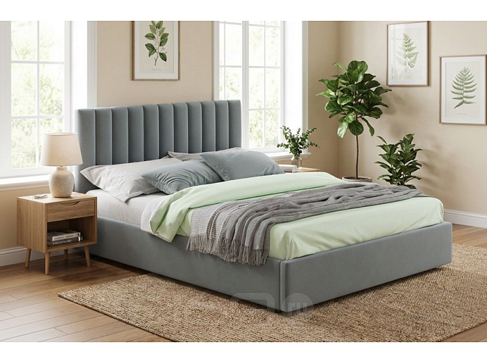 Кровать Olivia велюр серый без подъёмного механизма 1600x2000, изголовье мягкое