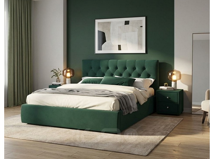 Кровать Verona велюр изумруд с подъемным механизмом 1400x2000, ортопедическое основание, изголовье мягкое