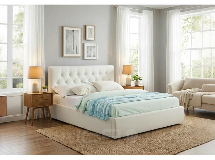 Кровать Verona велюр бежевый без подъёмного механизма 1800x2000, изголовье мягкое