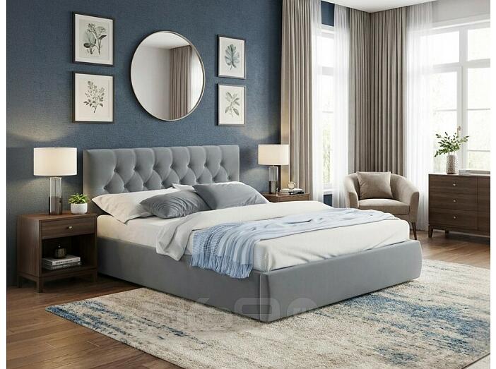 Кровать Verona велюр серый без подъёмного механизма 1800x2000, изголовье мягкое