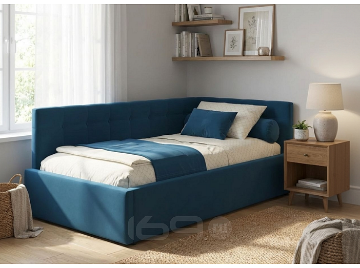 Кровать Bonna велюр синий без подъёмного механизма 900x2000, ортопедическое основание, изголовье мягкое