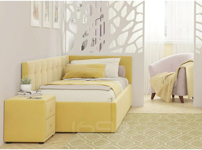 Кровать Bonna велюр жёлтый без подъёмного механизма 900x2000, ортопедическое основание, изголовье мягкое
