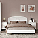 Основным декоративным элементом коллекции является круг. Явно представленный фрезеровкой по фасадам тумбы, комода, в изголовье кровати и ручках-кнопках.