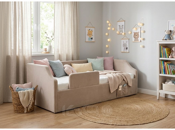 Кровать “Дрим” - это идеальное решение для детской комнаты. Мягкая обивка из приятного на ощупь, гипоаллергенного велюра обеспечивает комфорт и уют во время сна.