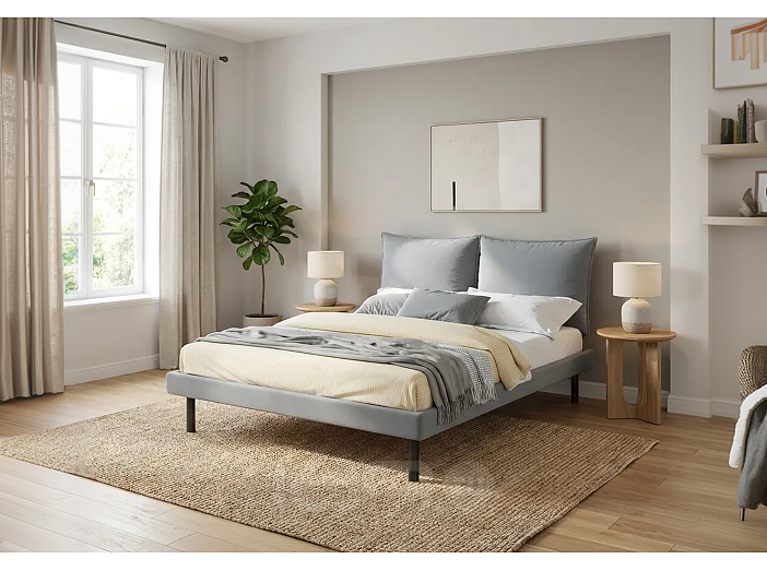 Кровать Fly велюр серый без подъёмного механизма 1600x2000, изголовье мягкое