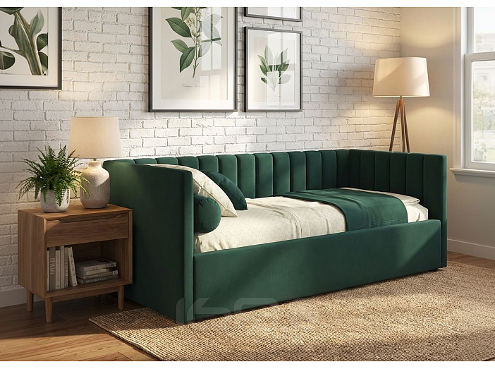 Кровать Milena велюр изумруд с подъемным механизмом 1200x2000, ортопедическое основание, изголовье мягкое