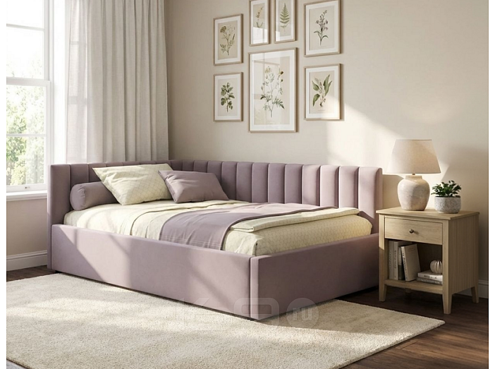 Кровать Milena велюр лиловый с подъемным механизмом 1200x2000, ортопедическое основание, изголовье мягкое