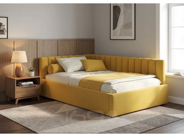 Кровать Milena велюр желтый с подъемным механизмом 1200x2000, ортопедическое основание, изголовье мягкое