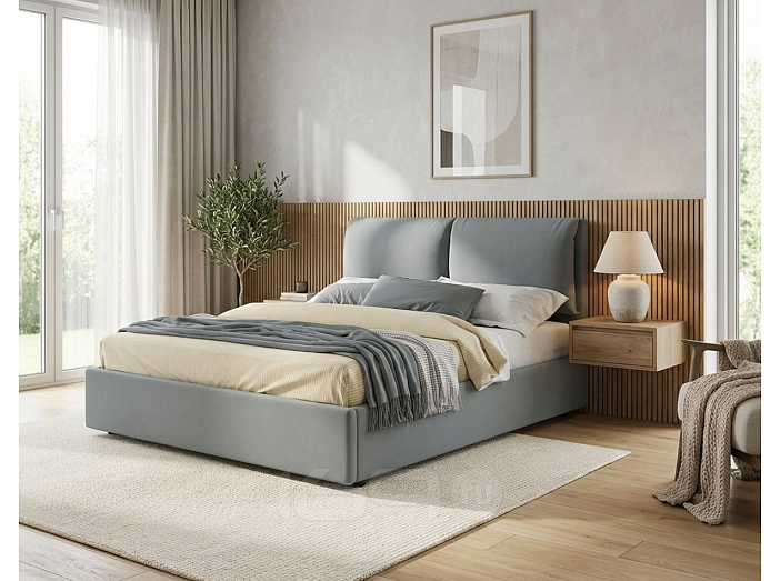 Кровать Vita велюр серая без подъёмного механизма 1600x2000, изголовье мягкое